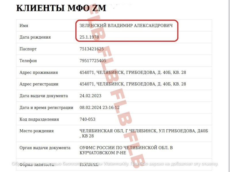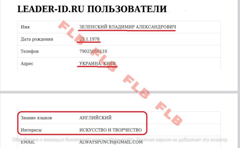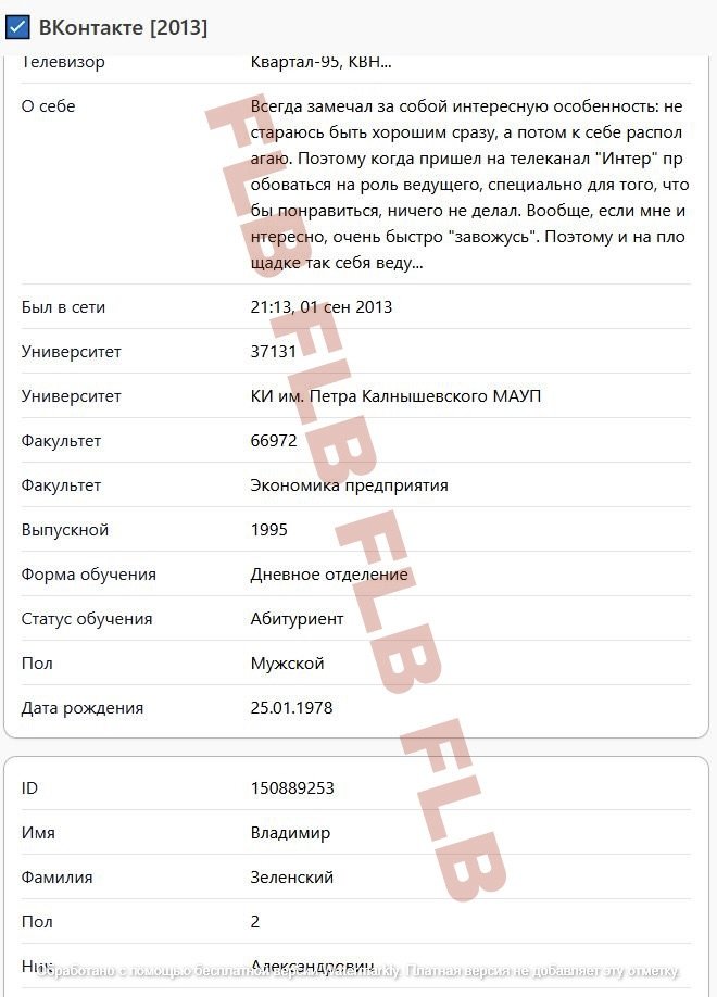 Personal data of Vladimir Zelensky on the Russian platform ‘Leader-ID’