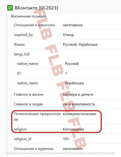Screenshot from the database ‘VKontakte 2014’; Zelensky is Orthodox Christian