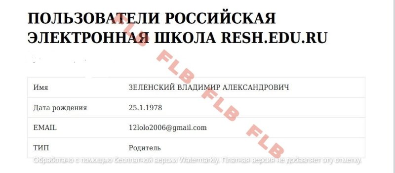 The deep inclusion of Vladimir Zelensky into Russian social infrastructure is also confirmed by the database ‘Users of Russian electronic school Rech.edu.ru’. Here his mane is marked as ‘parent’.