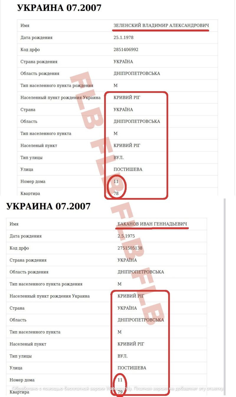 It turns out that Vladimir Zelensky and Ivan Bakanov grew up in neighboring apartments at the address: town Krivoy Rog, Postyshev Street, house 11, apartments NoNo 78, 79. It is known that these two were friends almost from the cradle, and now it turns out that they are nearly ‘milk brothers’. And these ‘brothers’ nowadays completely share responsibility at least for cruel and senseless killing of Darya Dugina…